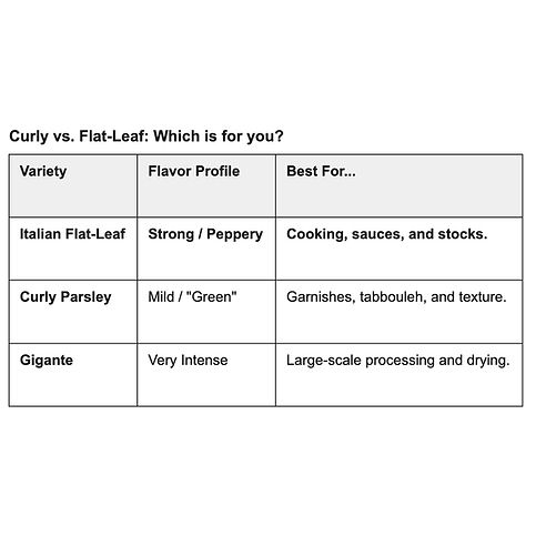 Parsley is a "cut-and-come-again" biennial. In its first year, it produces a lush mound of foliage. In its second year, it sends up a flower stalk, goes to seed, and then retires. On a patio, it acts as a perfect "filler," growing happily at the base of taller plants like 'Big Boy' Tomatoes.