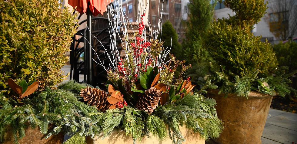 And there you have it! Our planters are beautiful, ready for the holidays, and they of course look Bountiful. These will greet customers when they walk in and let them know the holiday magic is here.